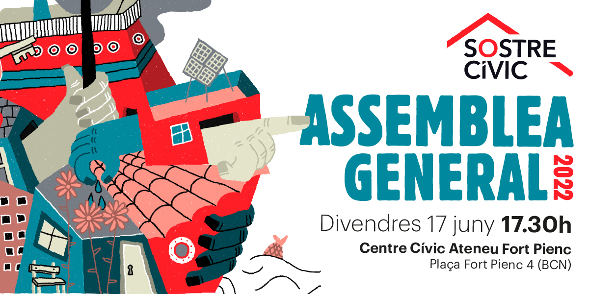 El proper divendres 17 de juny a les 17.30 h totes les persones sòcies estem convocades a l’Assemblea General Ordinària (AGO) de Sostre Cívic que tindrà lloc al Centre Cívic Ateneu Fort Pienc a la Plaça Fort Pienc, 4 de Barcelona.