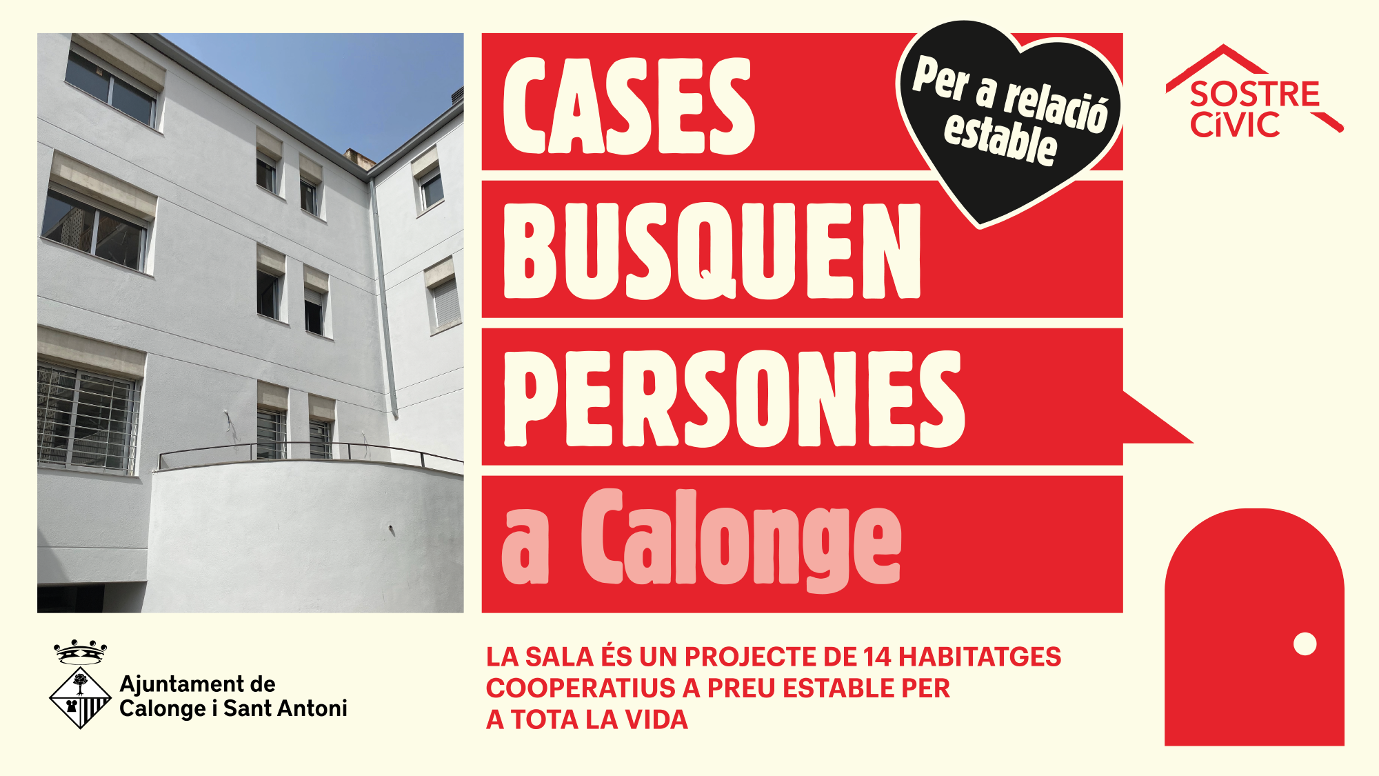 Conjuntament amb l’Ajuntament de Calonge i Sant Antoni, impulsem La Sala, el primer projecte d’habitatge cooperatiu del municipi. Un edifici fins ara en desús i propietat d’una entitat financera que hem recuperat per oferir accés a l’habitatge digne i assequible a la localitat des d’una gestió col·lectiva, de vocació pública i no-especulativa.