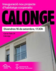 Estem d’enhorabona! Inaugurem un projecte pioner: el primer projecte d’habitatge cooperatiu de tot l’Estat dirigit específicament pel jovent, en un edifici rehabilitat a Calonge amb l’objectiu d’oferir una alternativa assequible i digna d’habitatge per emancipar-se als joves del municipi.