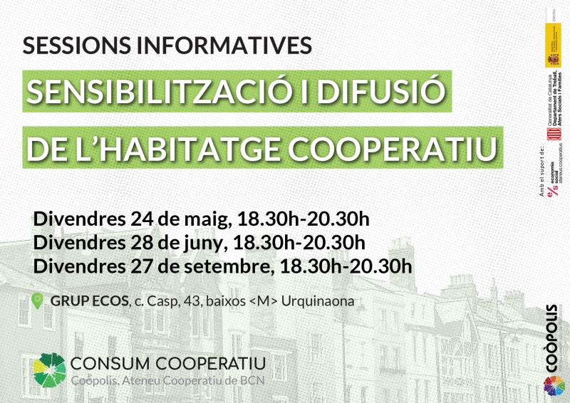 17:30 - 19:30 Sensibilització i difusió de l’habitatge cooperatiu 27 de September de 2019 @ 18:30 - 20:30 Sensibilització i difusió de l’habitatge cooperatiu En aquesta xerrada promoguda pel Cercle de Consum de Coòpolis plantejarem la problemàtica d’accés a l’habitatge i com models alternatius poden... Read more »