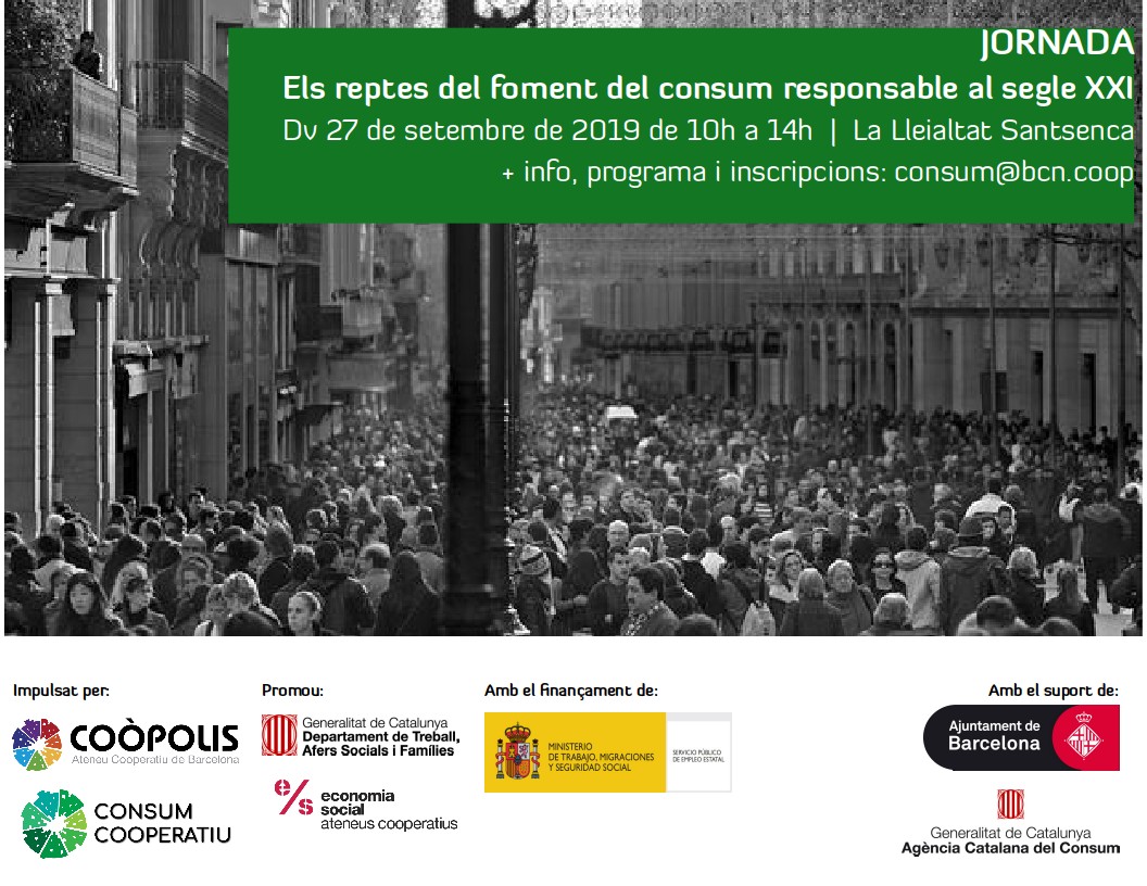 9:00 - 13:00 Els reptes del foment del consum responsable al segle XXI 27 de September de 2019 @ 10:00 - 14:00 Els reptes del foment del consum responsable al segle XXI Com les cooperatives poden promoure el consum responsable? Els darrers vint anys, la idea del consum com a eina de... Read more »