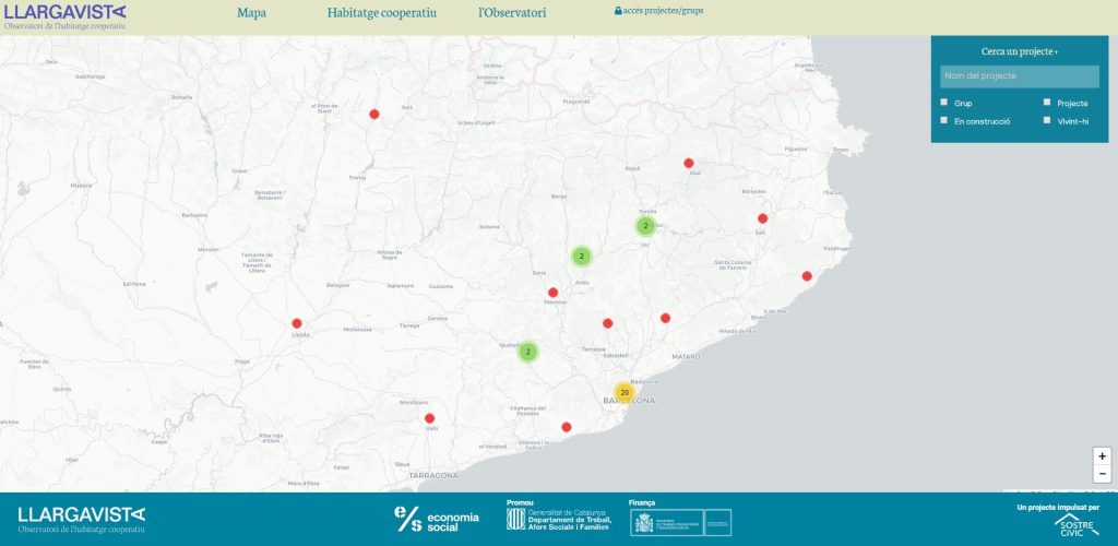 - El principal producte de l’observatori és un portal web amb un mapa interactiu incorporat, en què s’hi mostren totes les iniciatives censades d’habitatge cooperatiu en cessió d’ús, amb la informació de cada projecte.