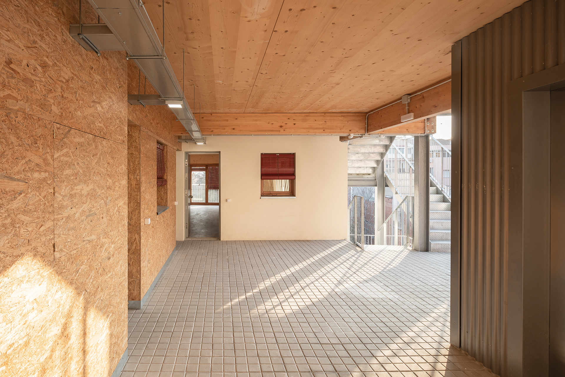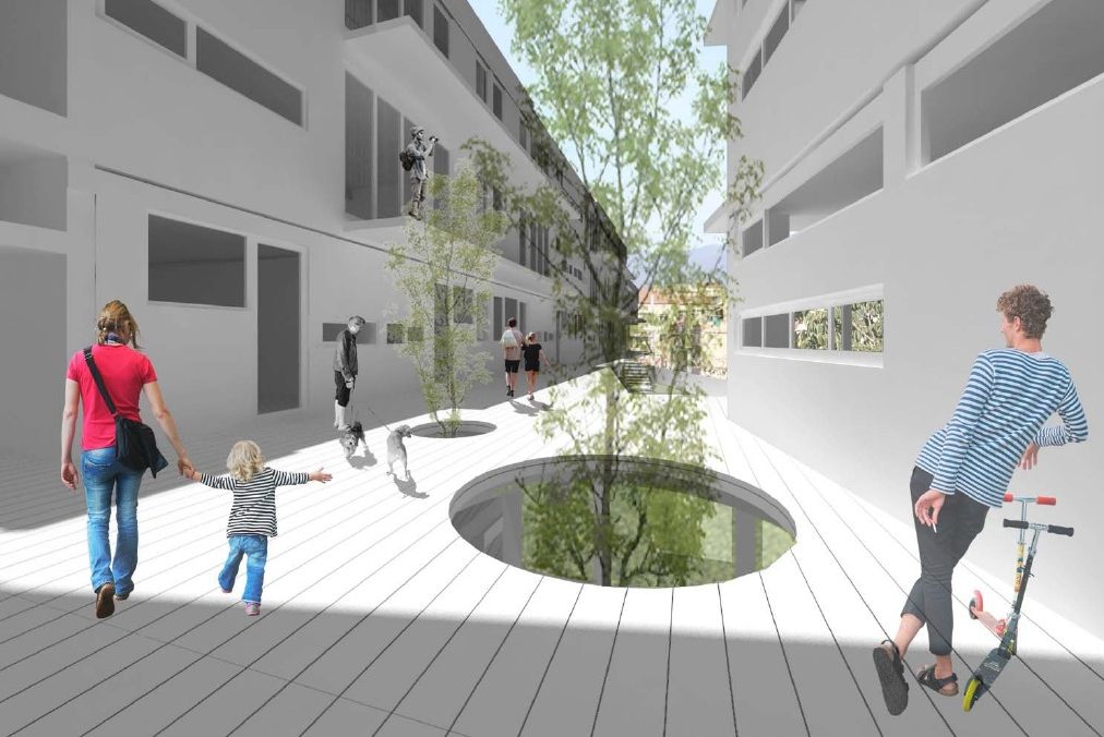 Edifici plurifamiliar de 39 habitatges en cessió d’ús, aparcaments i espais comunitaris.