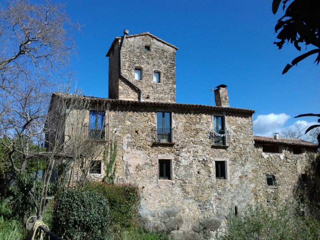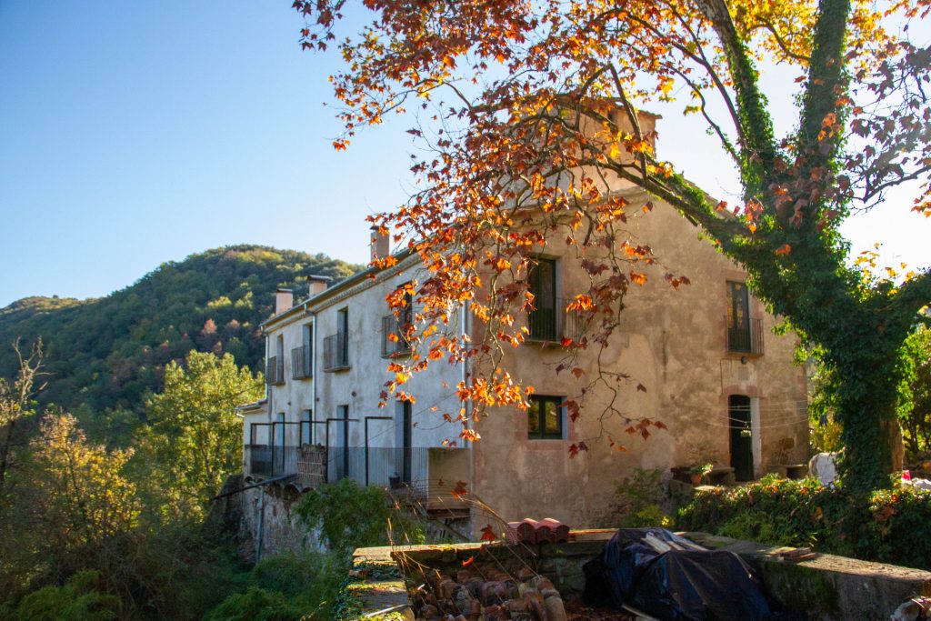 Des de finals de 2021 ja vivim a l’edifici principal, que està en bones condicions i només necessitava petites actuacions de rehabilitació. Es tracta d’un edifici de dues plantes, amb 9 habitacions i espais comuns: un rebedor, una cuina amb foc a terra i forn, una sala menjador molt gran, i 4 banys complets, a més del rentador i tota la planta baixa, que es farà servir com magatzems, rebost i tallers.